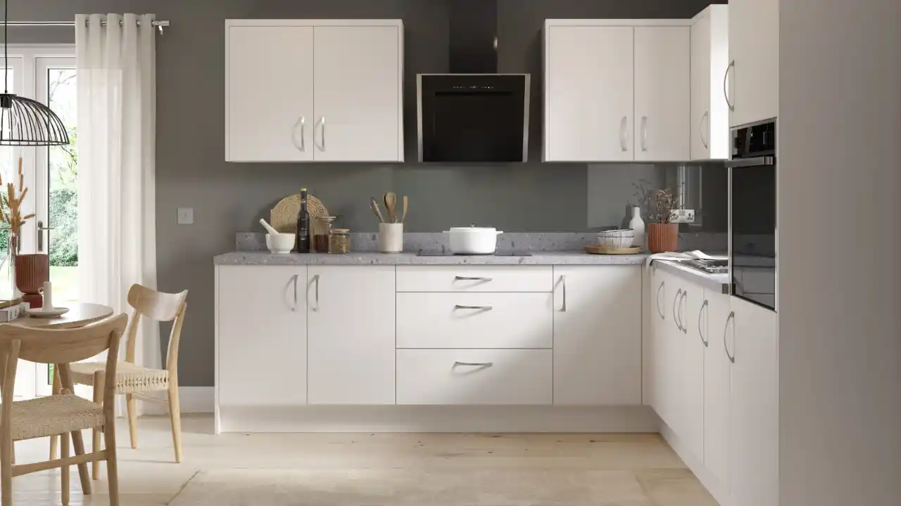 The Value Slab Range offers 18mm MFC cut and edged slab doors in Matt Snow White and Matt Light Grey, providing a high-quality, budget-friendly option for trade kitchens.